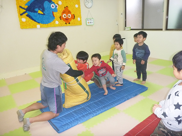 体操選手の先生が幼児にも安全な体育教室を開いています。健やかに成長していく子どもたちの姿は喜ばしいものです。